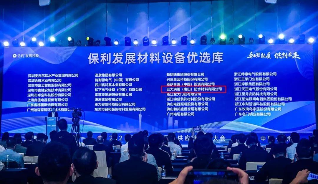 远大洪雨凭借高效的履约、良好的行业口碑、过硬的产品质量、专业用心的服务等综合实力,获评保利发展专业防水解决方案提供商