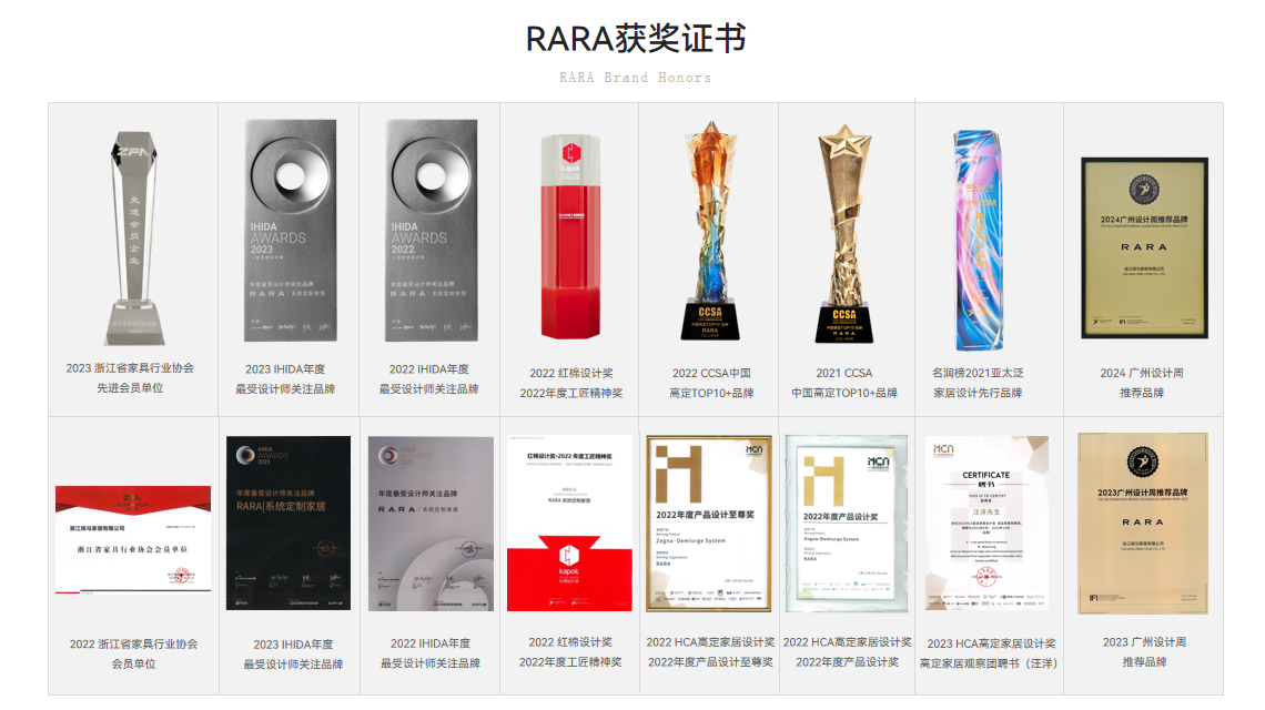 图片为RARA品牌荣获的各类奖项