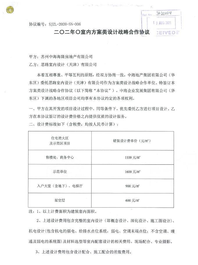| 战略合作名称: | 2****室內方案類設計戰略合作協議 |
