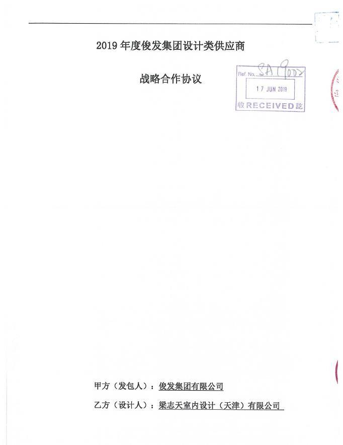 | 战略合作名称: | 2****度俊發集團設計類供應商戰略合作協議 |