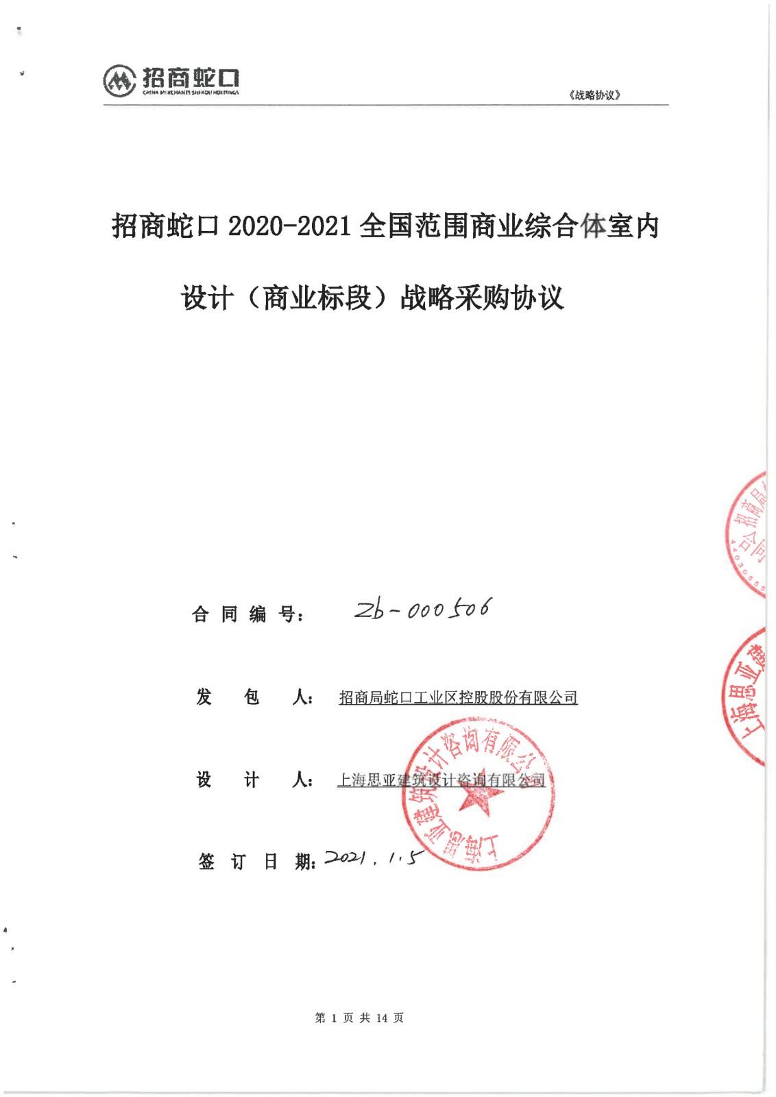 | 战略合作范围: | 发包人与设计人签订《招商蛇口 2020-2021 年全国范围商业综合体室内设计(商 ...... [登录可见] |