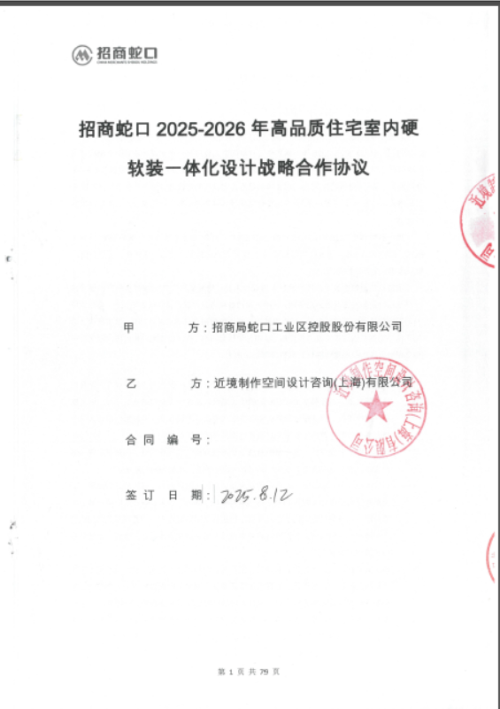 开发商名称: 招****工业区控股股份有限公司 战略合作名称: 招****2025-2026 年高品质住宅室内硬软装一体化设计战略合作协议 战略合作类别: 室内外装饰设计 战略合作期限: 2025年07月28日至2026年07月27日 战略合作范围: 适用项目