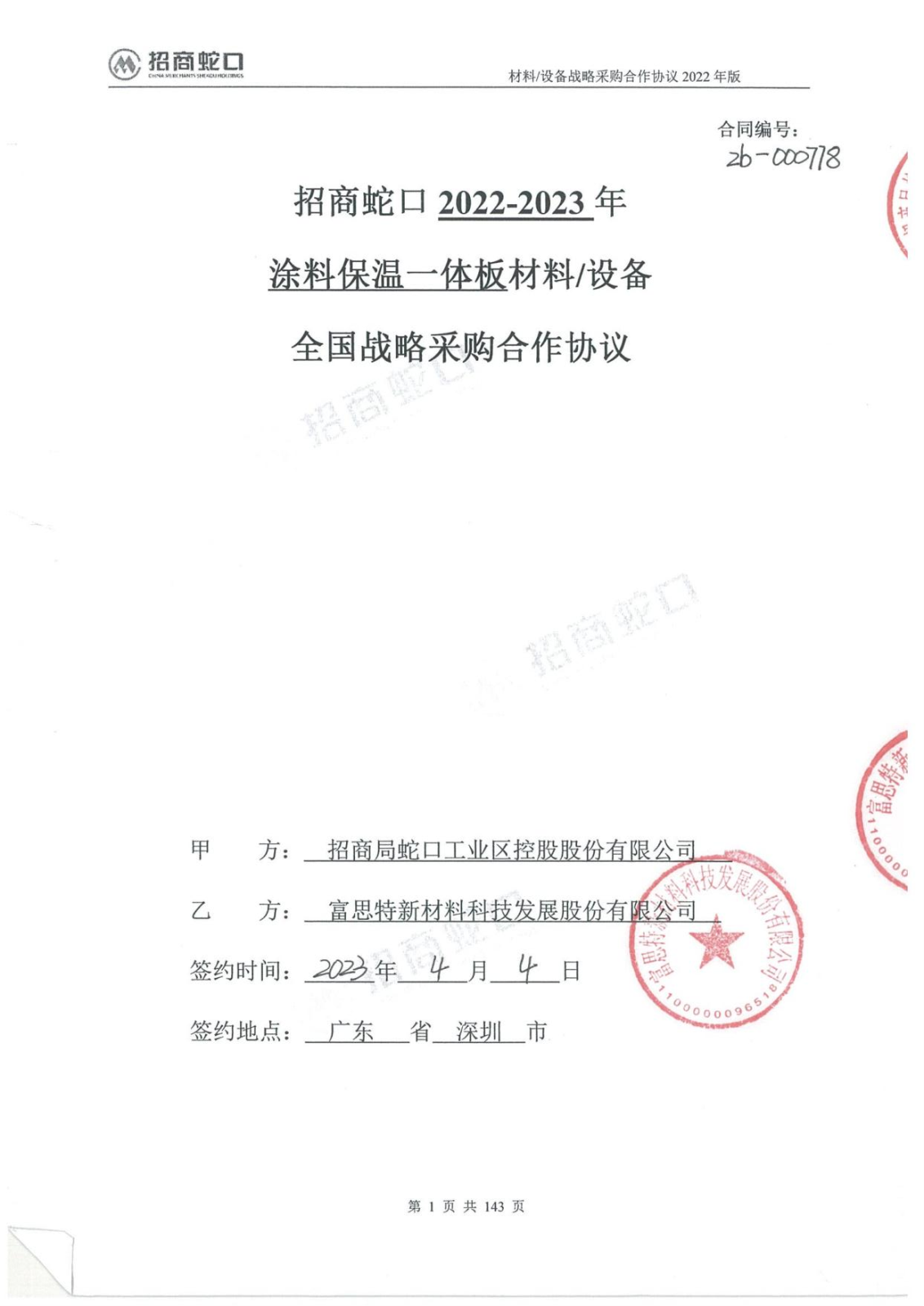 开发商名称: 招****工业区控股股份有限公司 战略合作名称: 招****口涂料保温一体板材料/设备全国战略采购 战略合作类别: 内外墙保温 战略合作期限: 2023年04月04日至2023年10月31日 战略合作范围: 招商招商...... [登录可见]