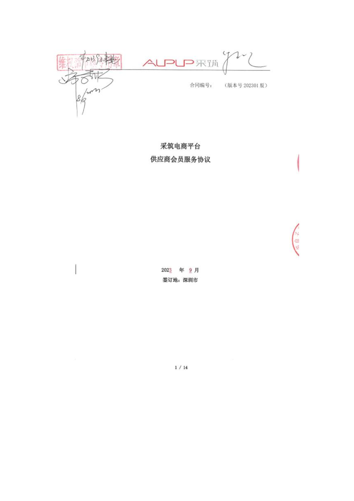 | 战略合作名称: | 采****台供应商会员服务协议 |