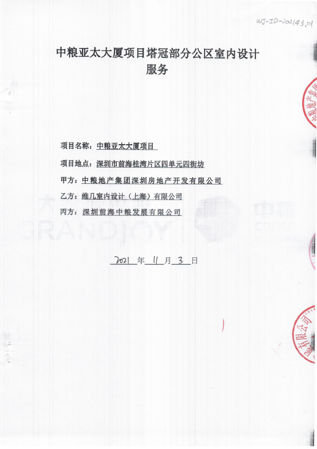 甲方名称: 中***集团深圳房地产开发有限公司 项目名称: 中粮亚太大厦项目 招标名称: 中***大厦项目 项目地点: 深圳 中标时间: 2021年11月03日 中标范围: 空中大堂及 ...... [登录可见]