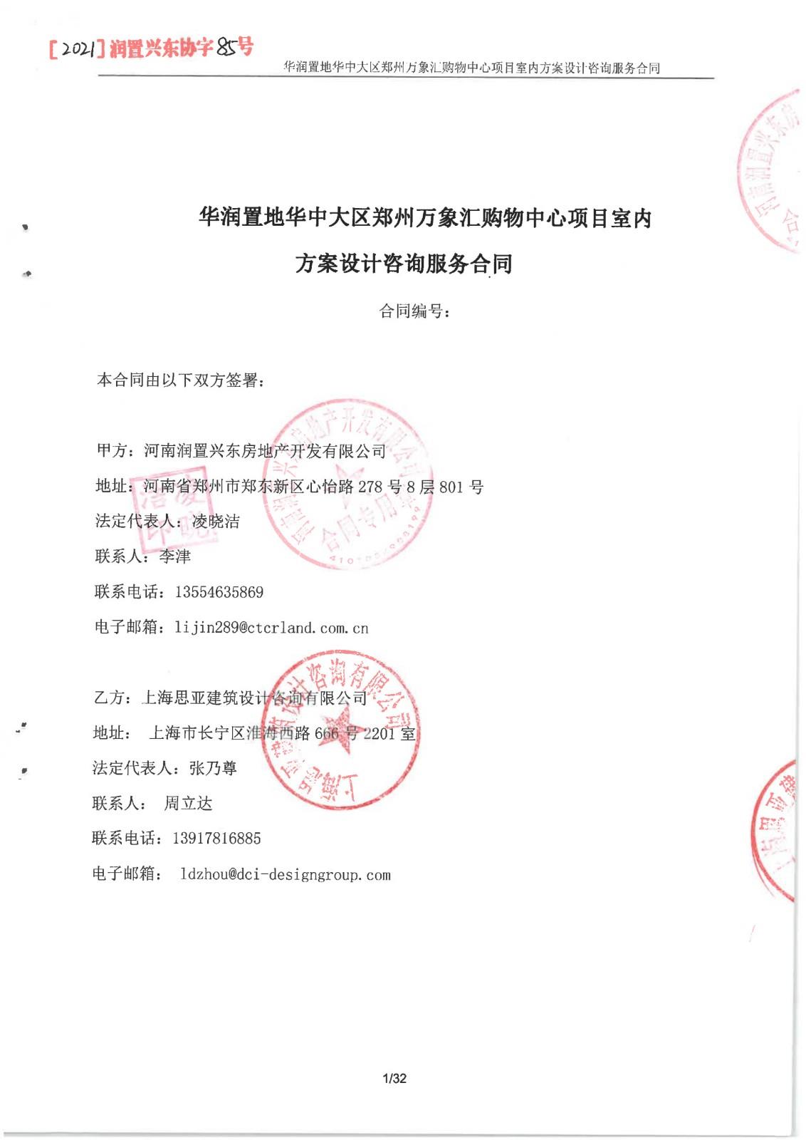 甲方名称: 华***有限公司 项目名称: 郑州万象汇 招标名称: 华***华中大区郑州万象汇购物中心项目室内方案设计咨询服务 项目地点: 郑州 中标时间: 2021年10月25日 中标范围: 商业室内公区范围内的概念设计,方案设计及重要空 ...... [登录可见]