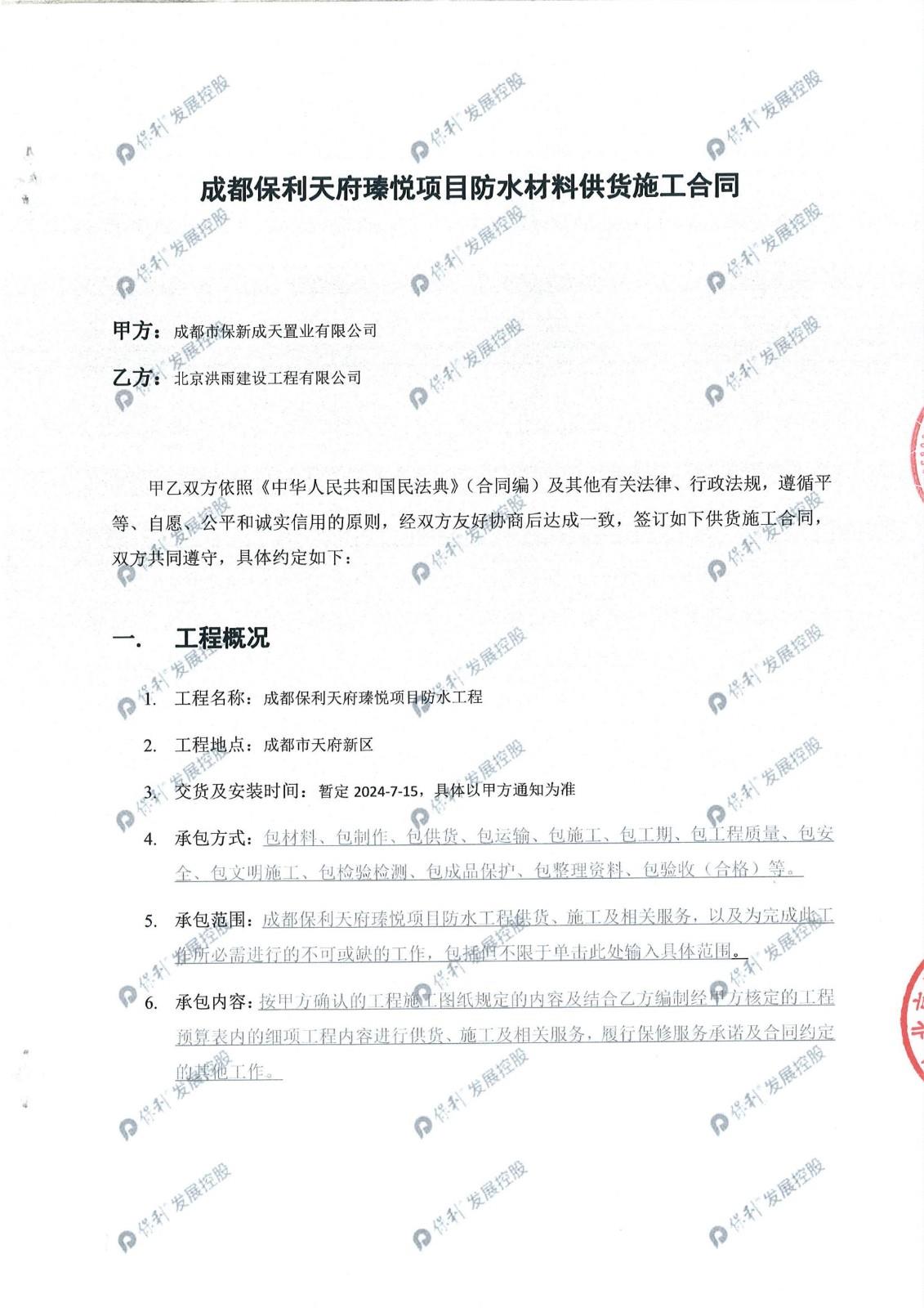 | 项目名称: | 成都保利天府瑧悦项目防水工程 |