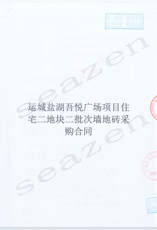 | 招标名称: | 运***吾悦广场项目住宅二地块二批次墙地砖采购合同 |