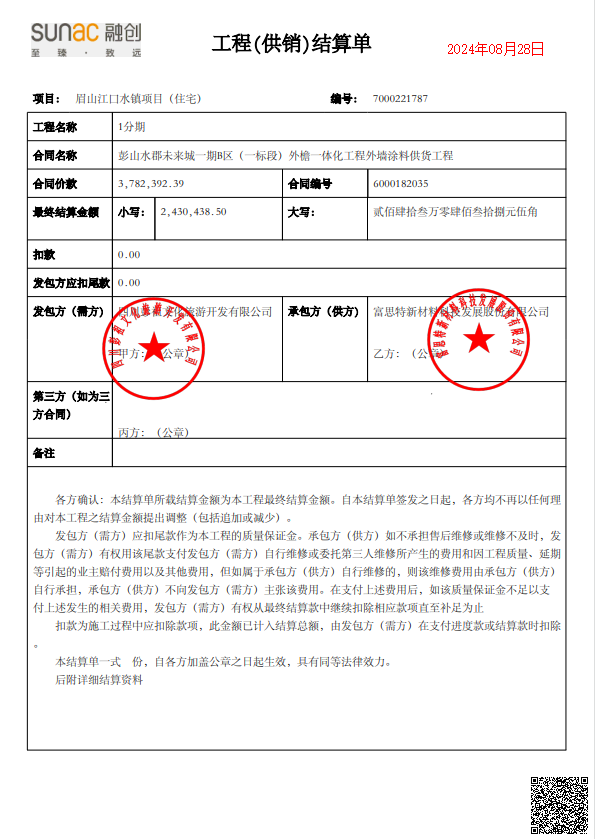 | 项目名称: | 彭山水郡未来城一期B区(一标段)外檐一体化工程外墙涂料供货工程 |