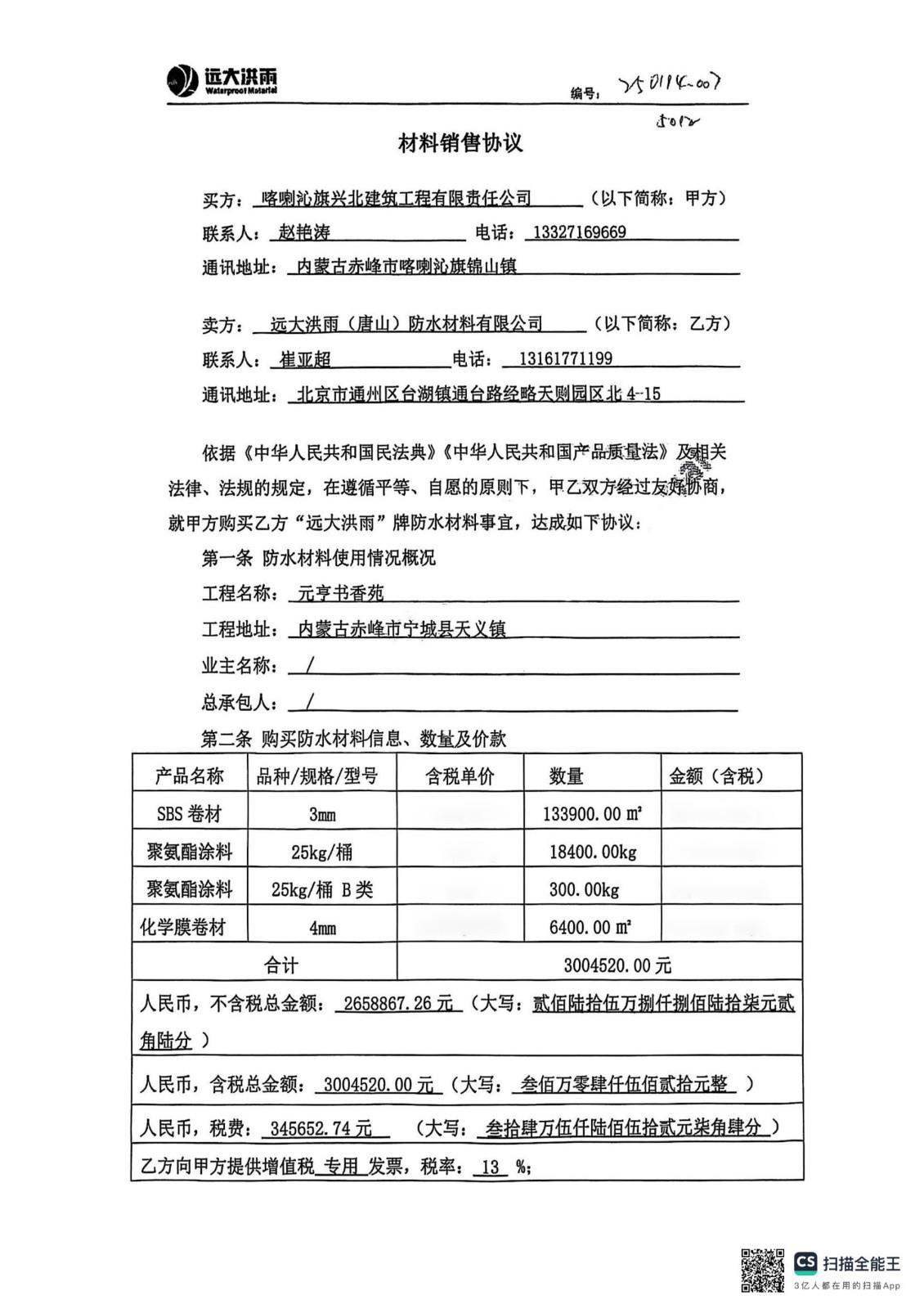 甲方名称: 喀***兴北建筑工程有限责任公司 项目名称: 元亨书香苑 招标名称: 元***苑 项目地点: 赤峰 中标时间: 2025年01月14日 中标范围: 防水材 ...... [登录可见]