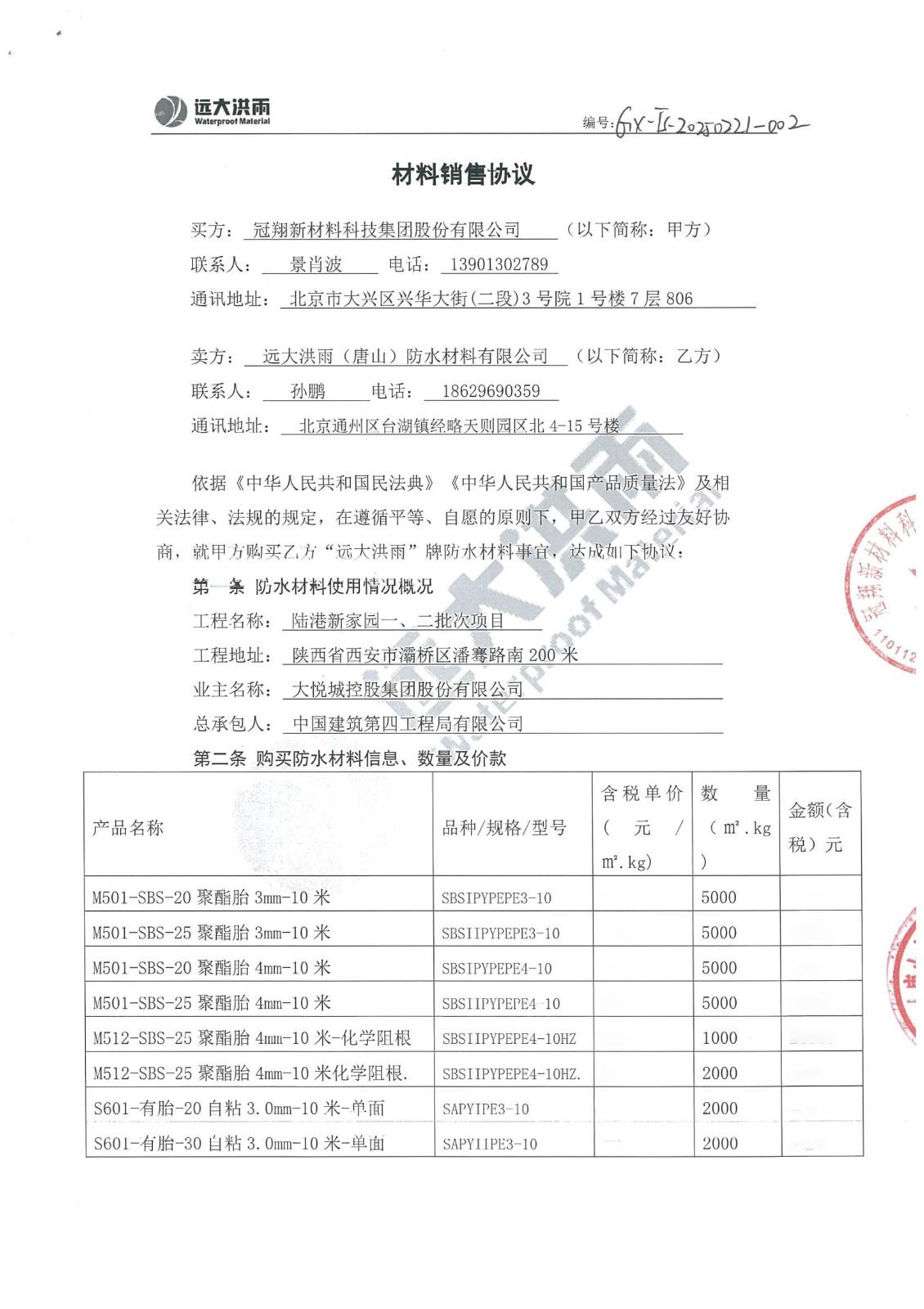 甲方名称: 大***股集团股份有限公司 项目名称: 陆港新家园一、二批次项目 招标名称: 陆***园一、二批次项目 项目地点: 西安 中标时间: 2025年02月12日 中标范围: 防水材 ...... [登录可见]