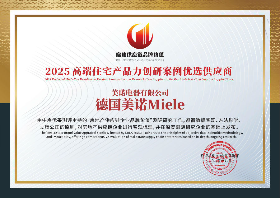 德国美诺Miele创立于1899年,秉持“Immer Besser 不断超越”的品牌精神,是全球领先的奢华家用电器制造商,包含 19 座生产工厂及约 50 家销售与服务子公司。产品涵盖高端厨电(嵌入式烤箱、蒸烤一体机、微蒸一体机等)、烟灶系列、洗碗机、制冷产品、咖啡机及洗衣干衣机。以20年耐用标准进行产品测试,专注创新与细节把控,成为高端用户首选。