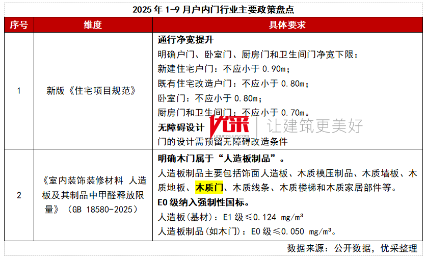 2025年,户内门市场迎来两项关键的政策调整,对产品设计和环保性能提出更高要求。