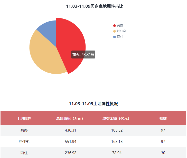 本周纯住宅共成交97幅,总建面积:551.94万㎡,较上周减少94幅;商住、商办及综合共成交127幅,总建面积:667.23万㎡,较上周减少237幅。