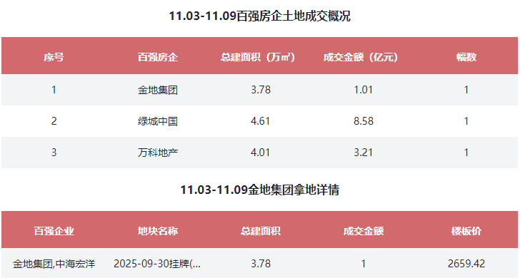 百强房企本周拿地3幅,总建面积:12.4万㎡,环比减少88.03%。成交总价:12.79亿元,环比减少90.58%。其中房企拿地建面TOP1金地集团共成交1幅地块,总建面积:3.78万㎡,成交总价:1.01亿元。