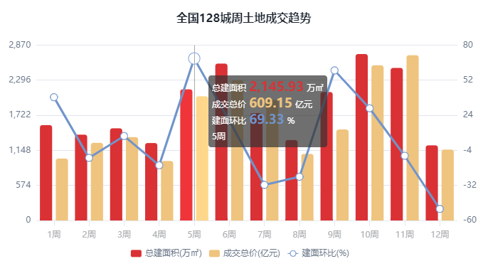根据优采云平台监测的128城数据,本周土地市场有224幅土地出让,总建面积1219.17万㎡,环比减少50.73%,成交总价345.64亿元,环比减少57.11%。百强房企拿地3幅,总建面积12.4万㎡,环比减少88.03%,成交总价12.79亿元,环比减少90.58%。