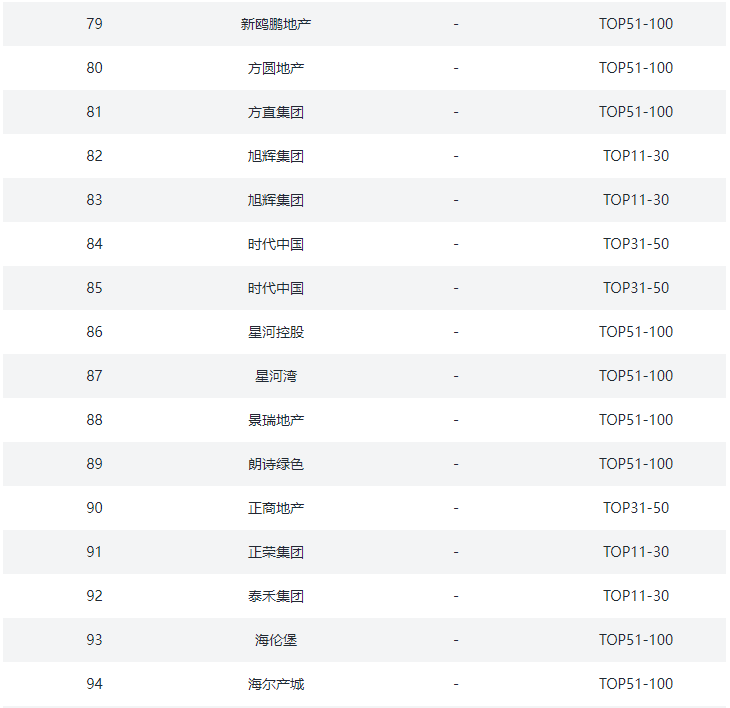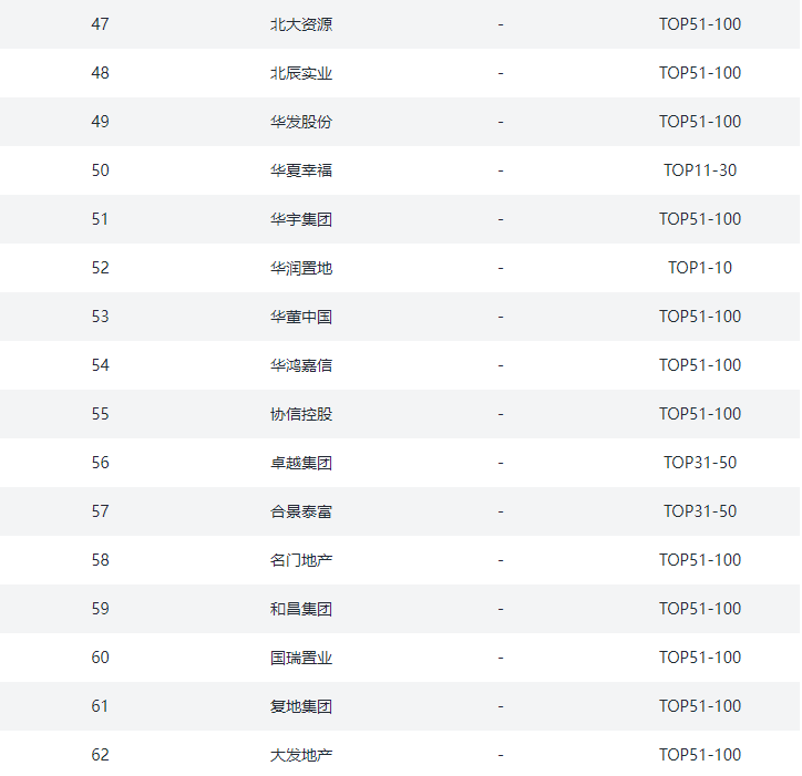 2.新增土地建面:百强房企新增土地建面排行数据仅含招拍挂方式