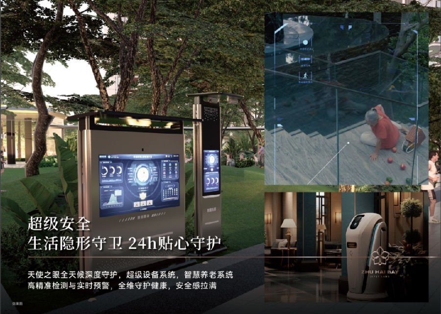 社区内还融入多项智慧化服务场景:童梦岛智慧屏与康养中心的健康监测设备,通过AI算法为用户提供个性化生活建议;迎宾机器人、智慧健康筛查、康复保健及养老样板间等配置,全面呈现即将在此展开的智慧未来生活。