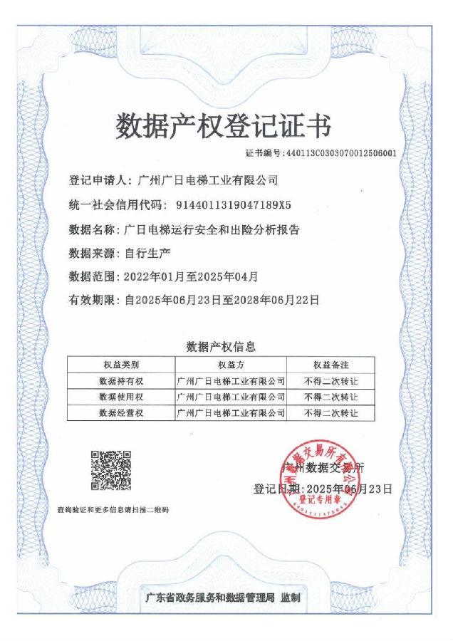 广日电梯坚定不移推进数字化转型发展战略,在数智化布局中实现多方位突破。2025年,公司成功斩获电梯行业数据产权登记证书,并完成企业核心数据资产确权,为数据合法流通、合规交易及价值深度转化筑牢坚实基础。在智能制造领域,公司坚持数智化发展路径,所属智能制造工厂成功入选广东省工业和信息化厅2025年先进级智能工厂名单。此外,公司自主研发的“电扶梯故障智能预诊断系统”,凭借在电梯安全智能化领域的技术成果与成熟实践应用,成功入选广州市“人工智能+”典型案例;“敏捷交付创新应用场景开发及实施项目”获评“年度数智化典范案例”,公司数智化转型实践获得行业权威认可。